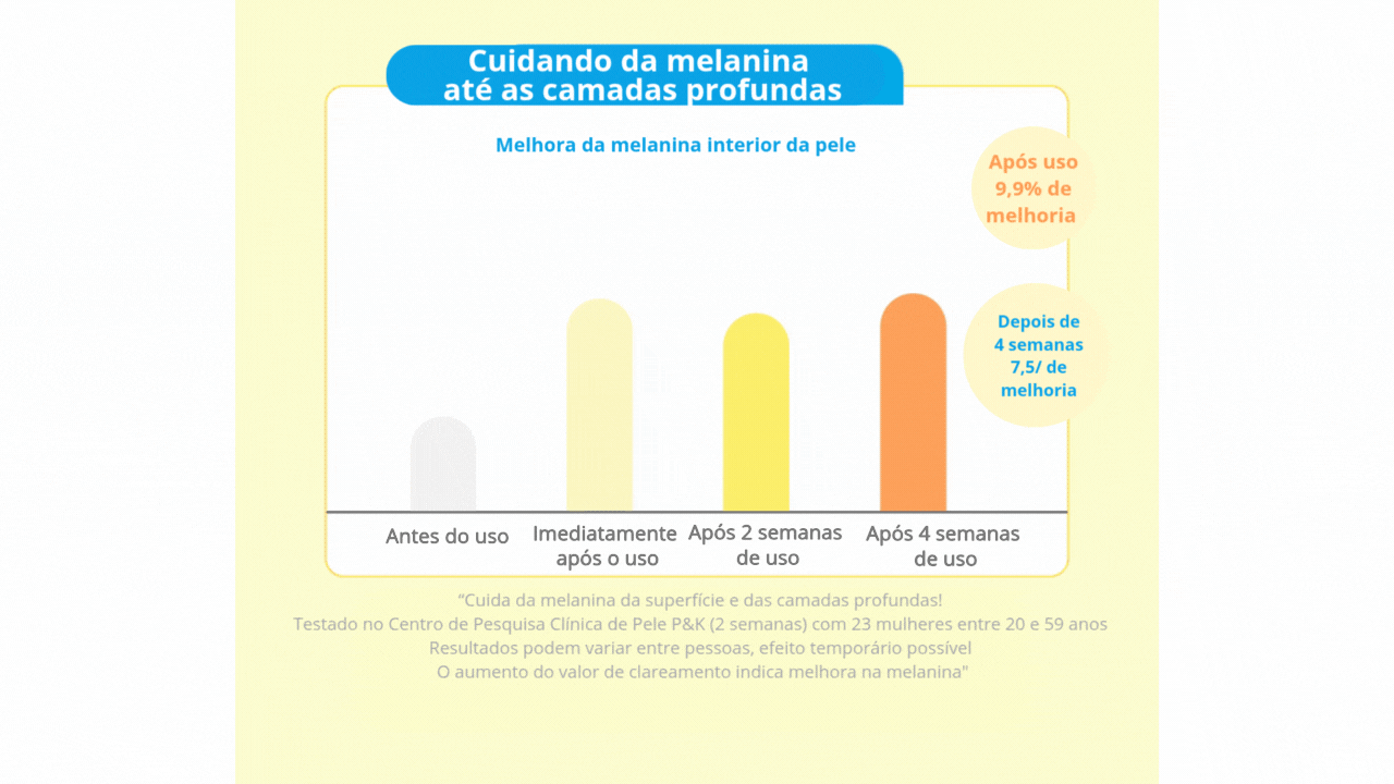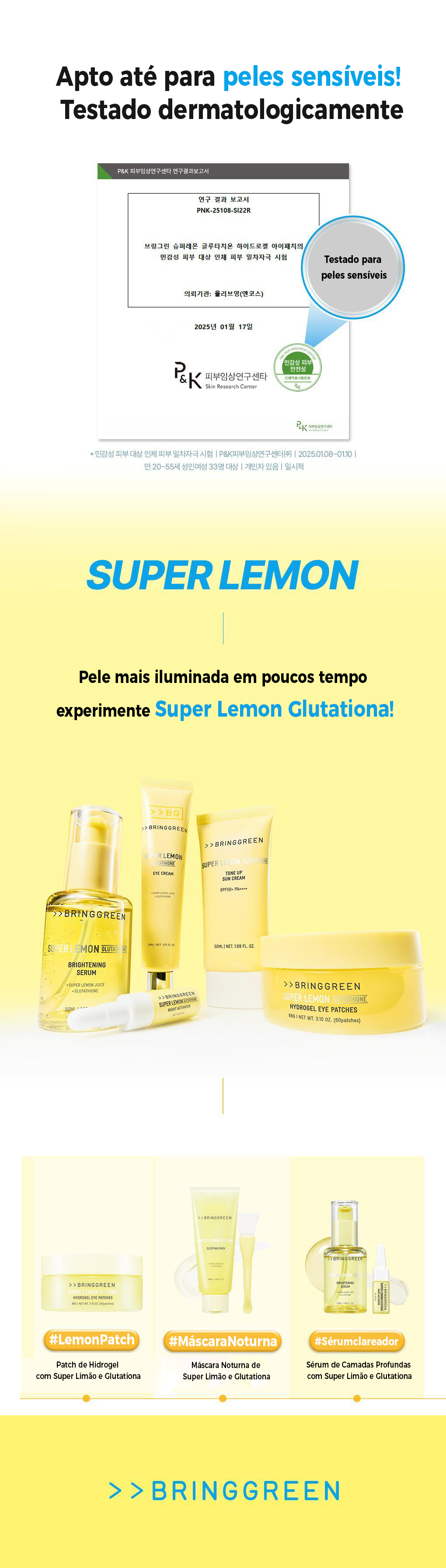 Água purificada, Glicerina, 1,2-Hexanediol, Niacinamida, Goma de Alfarroba, Pó de Musgo Irlandês, Copolímero de Acrilato, Musgo Irlandês, Goma Xantana, Betaína, Eritritol, Cloreto de Potássio, Ácido Tranexâmico, Pantenol, Poligliceril-10 Laurato, Suco de Limão, Alantoína, Glucomanano, Extrato de Musgo Irlandês, Butileno Glicol, Sacarose, Etilhexilglicerina, Goma de Celulose, Dextrina, Adenosina, Bakuchiol, Fragrância, Ácido Ascórbico, Glutationa, Fitato de Sódio, Arginina, Óleo Vegetal Hidrogenado, Extrato de Raiz de Coptis Japonica, Retinol (Retinaldeído), Hialuronato de Sódio, Gluconolactona, Lecitina, Tocoferol (Vitamina E), Biosacarido Goma-1, Sulfonato de Sódio de Azuleno.