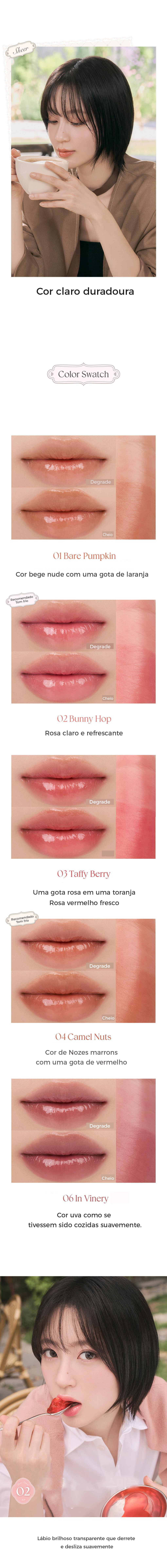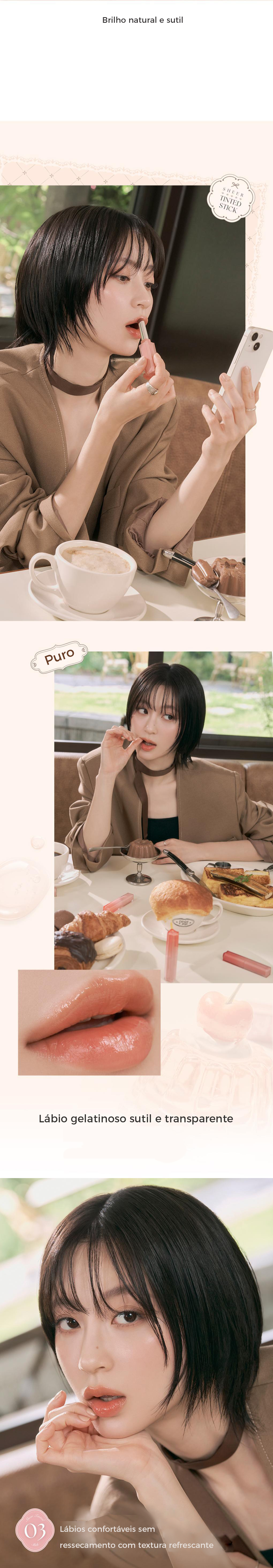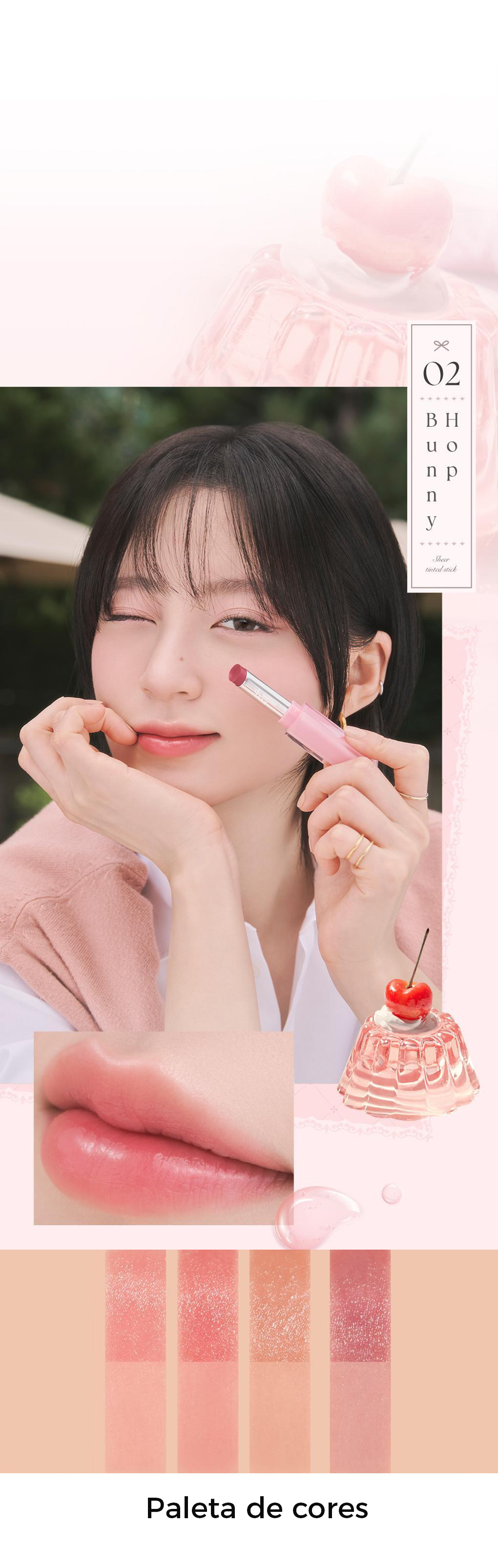 Octildodecanol, Triglicerídeo Caprílico/Caprico, Cera Sintética, Poliisobuteno Hidrogenado, Parafina, Glicerina, Cera de Candelila, Óleo de Semente de Argan, Óleo Vegetal Hidrogenado, Lecitina, Cera Microcristalina, Tocoferol (Vitamina E), Extrato de Flor de Lótus, Extrato de Flor de Lírio-d’Água Branca, Extrato de Flor de Cerejeira, Extrato de Flor de Rosa, Dióxido de Titânio (CI 77891), Óxidos de Ferro (CI 77491, CI 77492, CI 77499), Sorbato de Potássio.