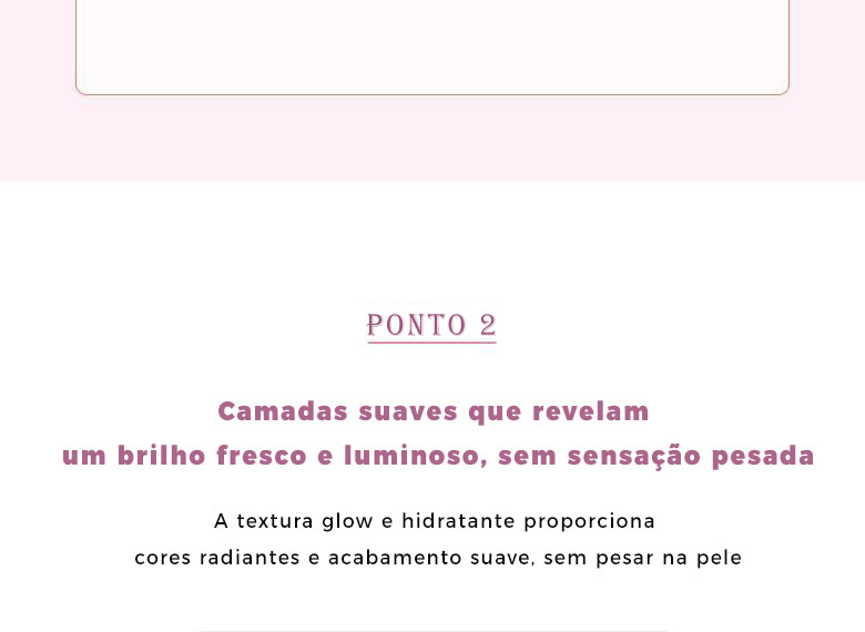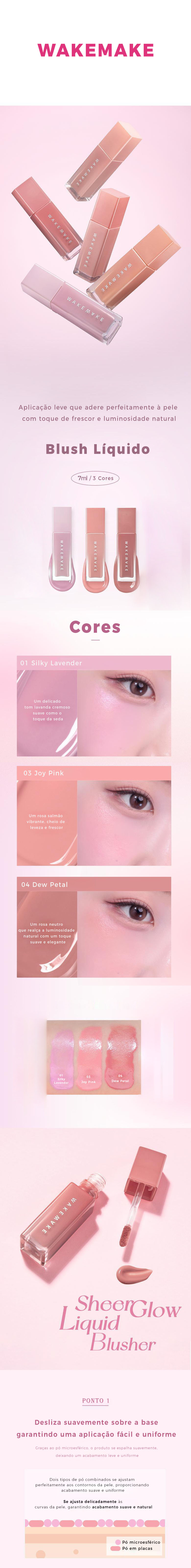 1. Após a base pronta, aplique uma pequena quantidade com o aplicador. 2 Dê batidinhas leves nas bochechas com os dedos ou com um puff.3 Espalhe suavemente até integrar à pele para um resultado natural.4 Reaplique se quiser uma cor mais intensa.