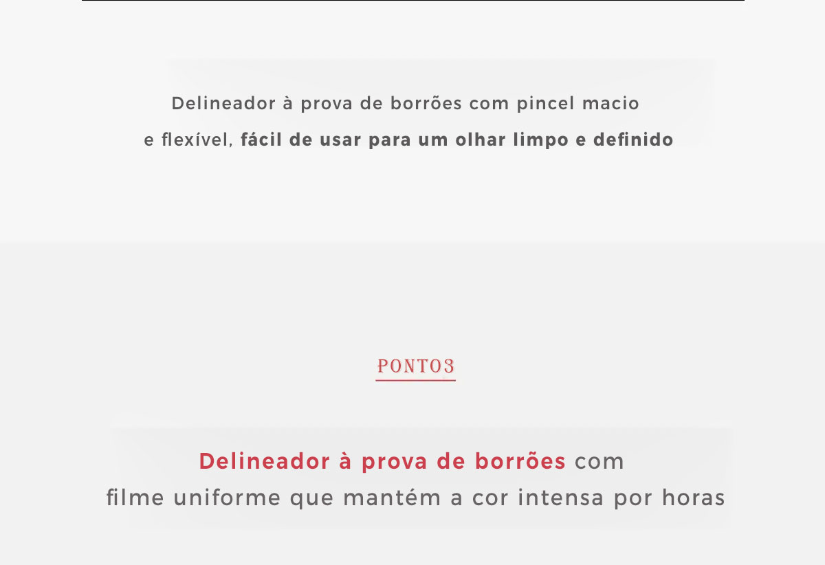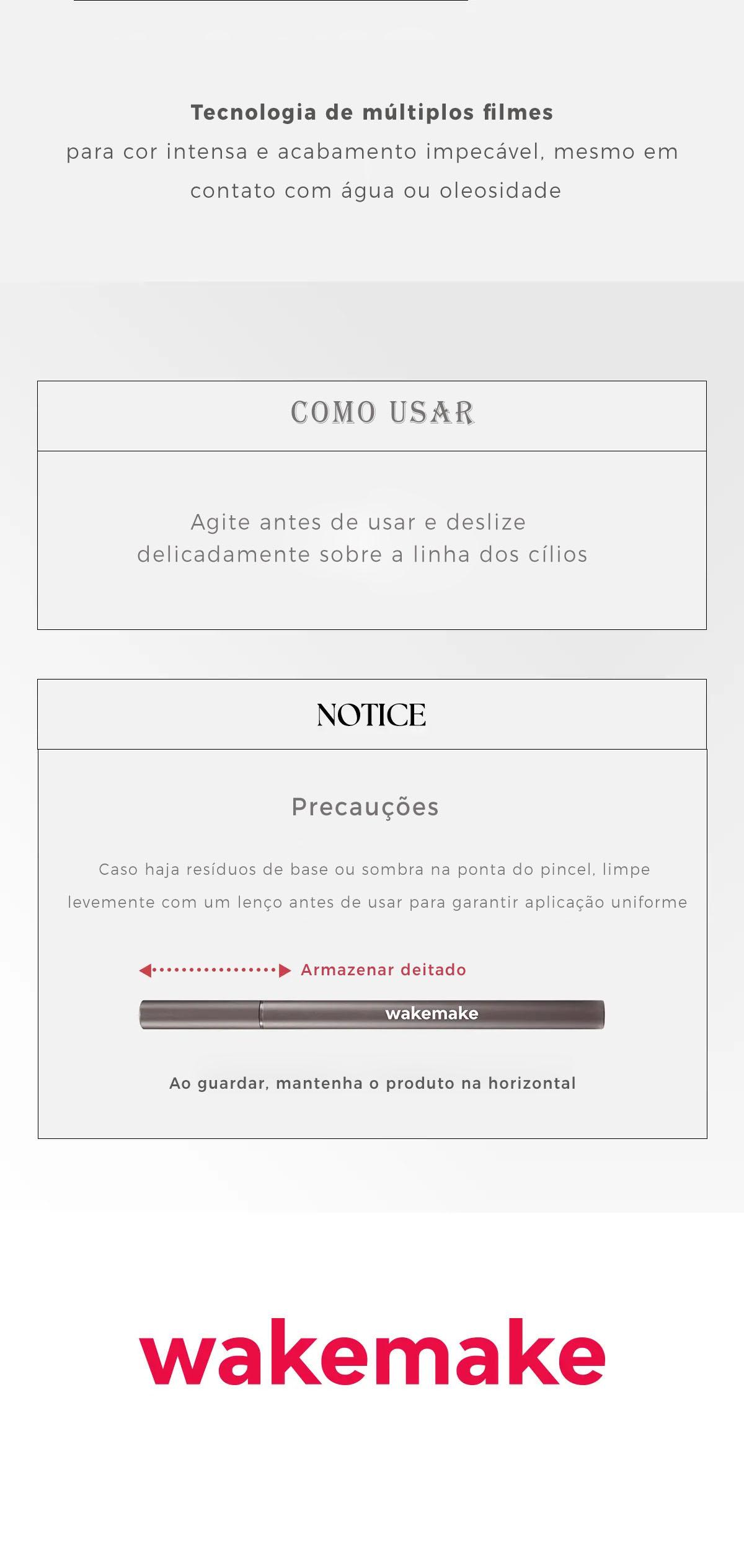 Agite bem antes de usar e, em seguida, aplique suavemente ao longo da linha dos cílios. Limpe a ponta do pincel com um lenço de papel antes de usar o produto para uma melhor aplicação.