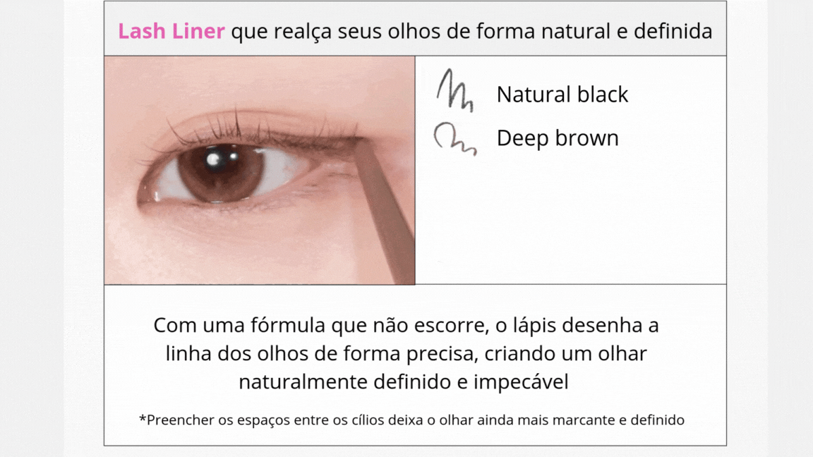 Lápis para olhos com alta fixação.Destaca o contorno dos olhos para um olhar definido e natural.