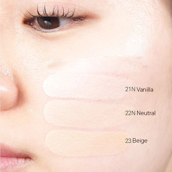 Água purificada, ciclometicone, dióxido de titânio (CI 77891), etilhexil metoxicinamato, metiltrimeticone, etilhexil salicilato, lauril PEG-9 polidimetilsiloxanoetildimeticone, polimetilsilsesquioxano, glicerina, butilenoglicol, cetil etilhexanoato, niacinamida, isododecano, 1,2-hexanodiol, diestearodimônio hectorita, hialuronato de sódio, PEG-10 dimeticona, acrilato / copolímero de dimeticona, sulfato de magnésio, sílica, octildodecanol, poligliceril-3 polidimetilsiloxanoetildimeticone, cetearildimeticone / vinildimeticone crosspolymer, ácido esteárico, hidróxido de alumínio, alumina, sulfato de bário, triethoxycprylil silano, poligliceril-4 isostearato, ácido polihidroxiestearico, isopropiltitanium triisostearate, adenosina, tri-sódio etileno-diamina-diacetato, dimetilmeticone, alantoína, etilhexilhidroxiestearato, estearato de magnésio, tocoferol, glicossaminoglicano hidrolisado, pantenol, propanodiol, sorbitol, etilhexilglicerina, fragrância, linalol, benzoato de benzila, hidroxicitronelal, óxido de ferro amarelo (CI 77492), mica (CI 77019), óxido de ferro vermelho (CI 77491), óxido de ferro preto (CI 77499), bismuto oxicloreto (CI 77163).